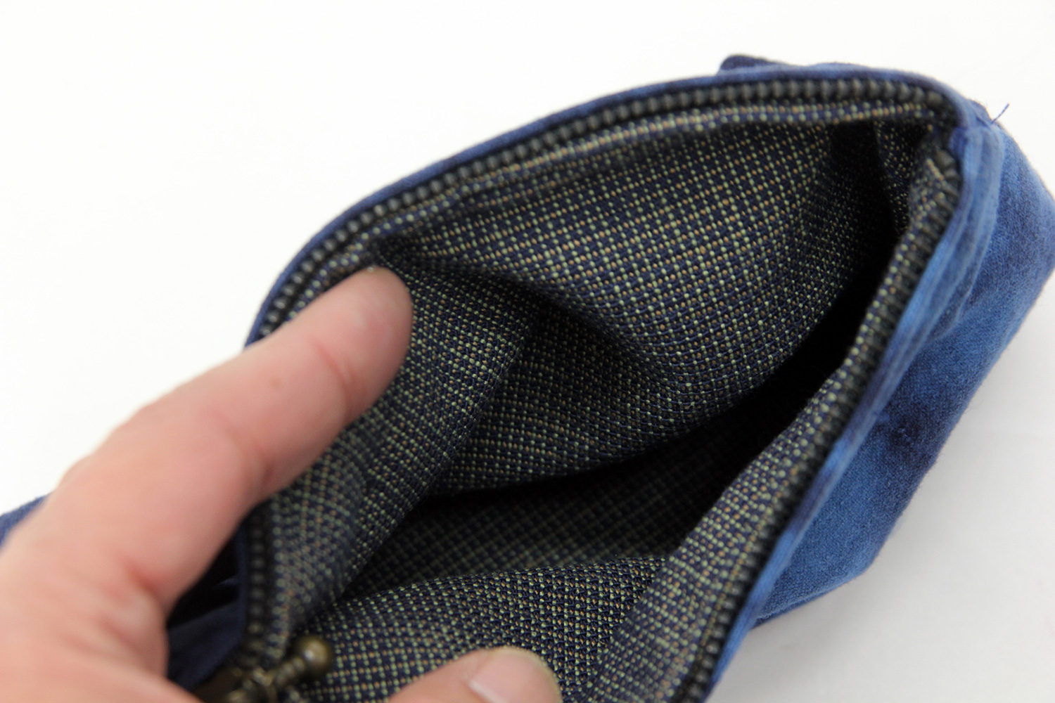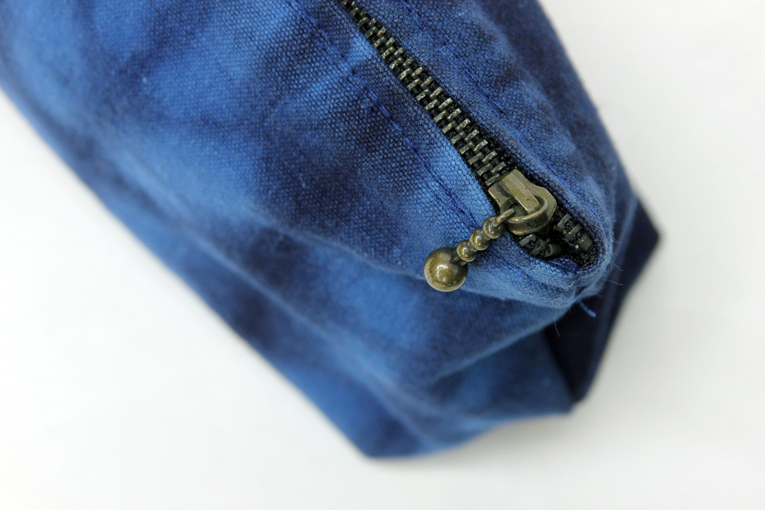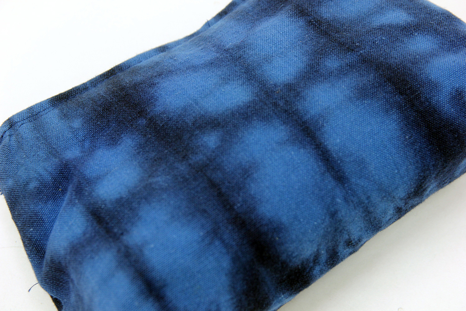 伝統の染め技法、絞り染めで藍染したポーチです。絞り染めは染めるたびに違った柄が出来上がるので、他にはないご自身だけのポーチとなります。