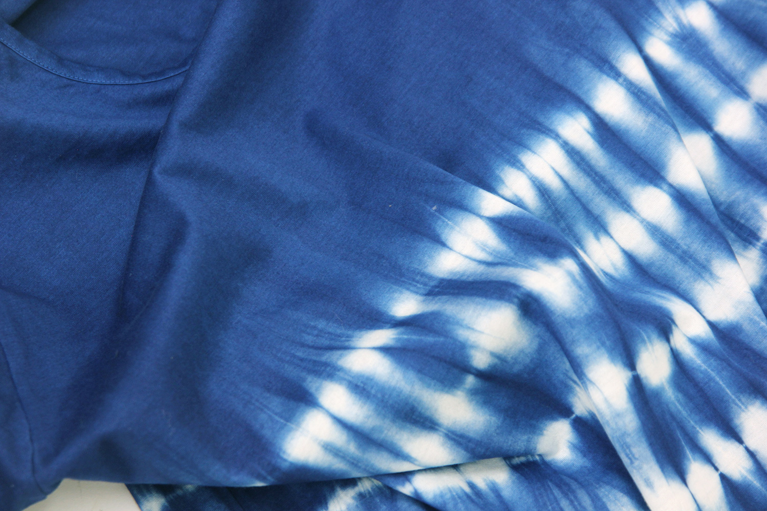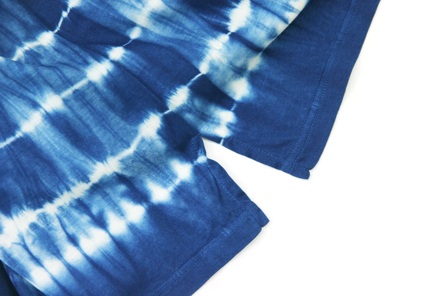 伝統染色技法である絞り染めで藍染したTシャツです。独特の美しいグラデーションの絞り模様は、一品一品同じ模様は存在しません。また、本藍染めの色は洗えば洗うほどに味わいが増しますので、時を経て変化する天然藍の風合いをお楽しみ下さい。