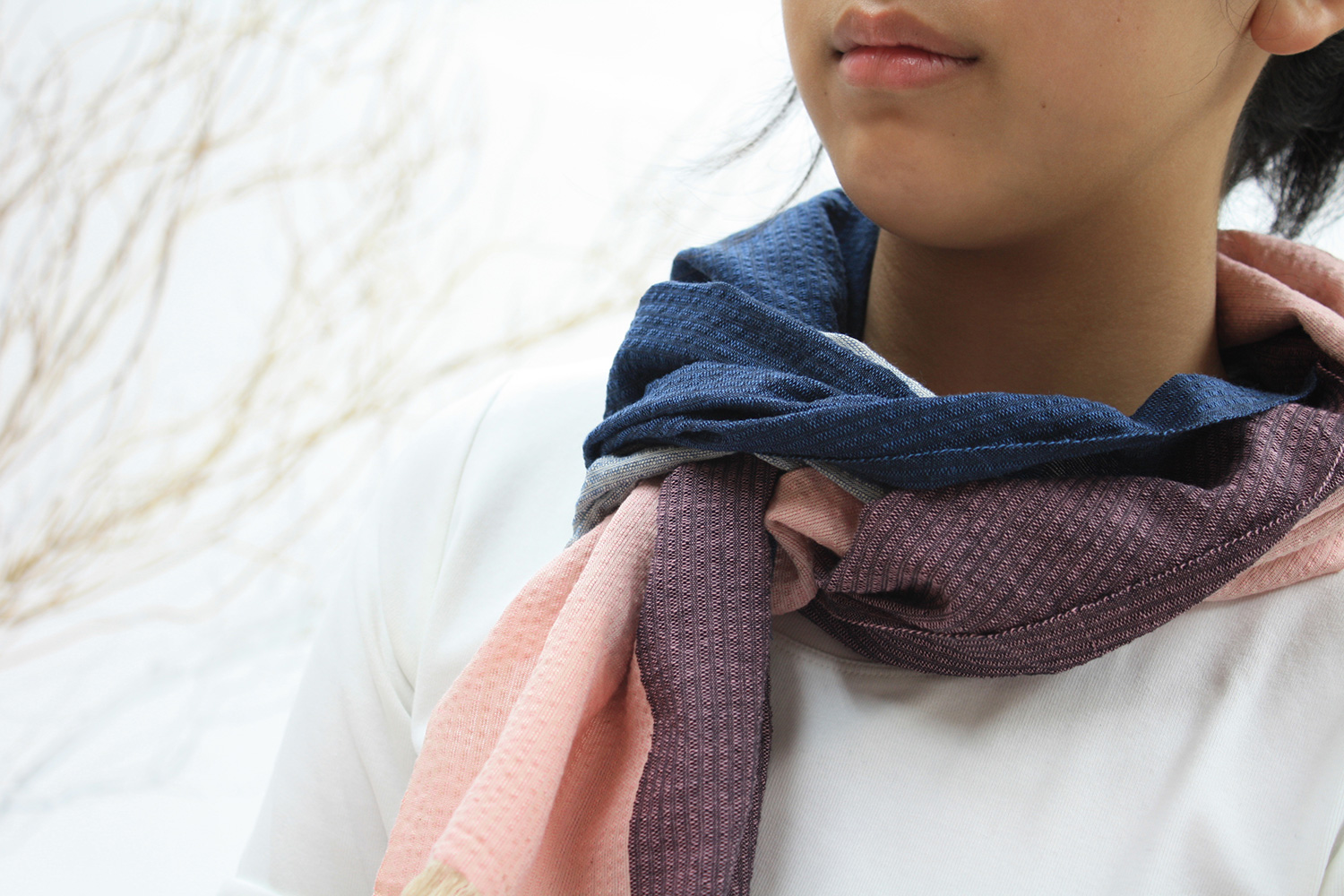 阿波しじら織のシボが特徴のさらりとした風合いのストールです。ストール用に柔らかく仕上げました。寒い時は保温効果があり暑いときは吸水性があり涼しく四季を通じてご使用いただけます。