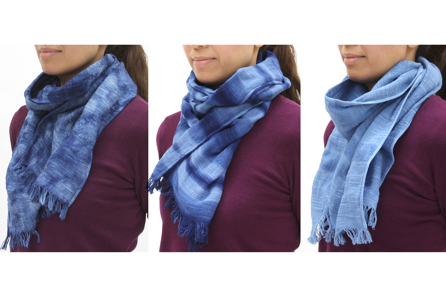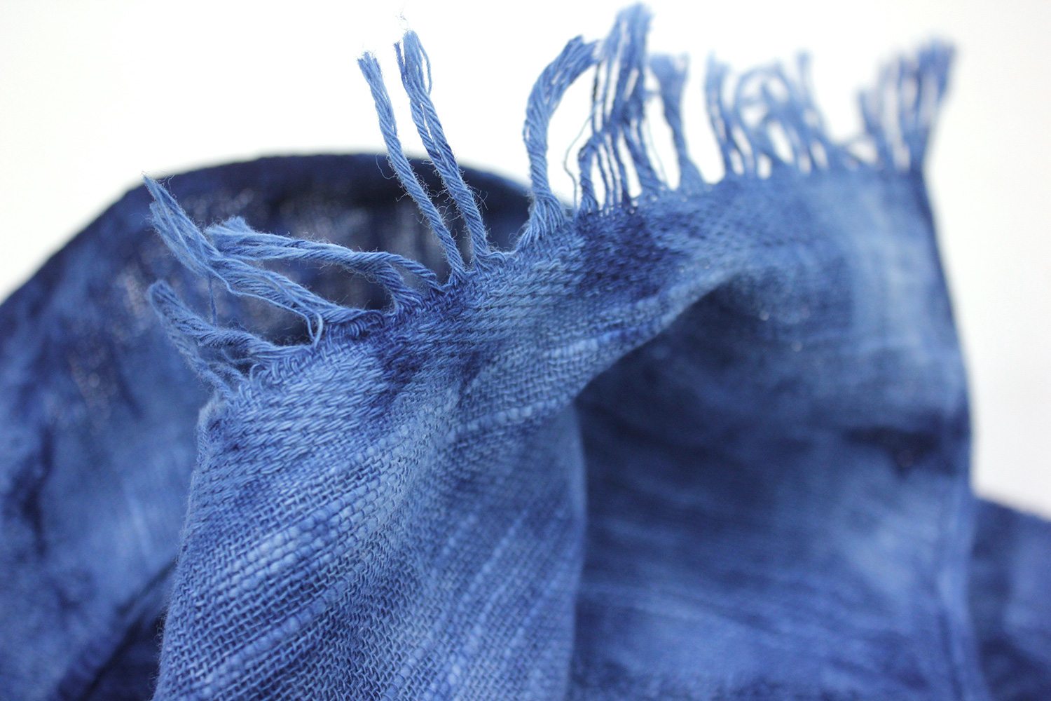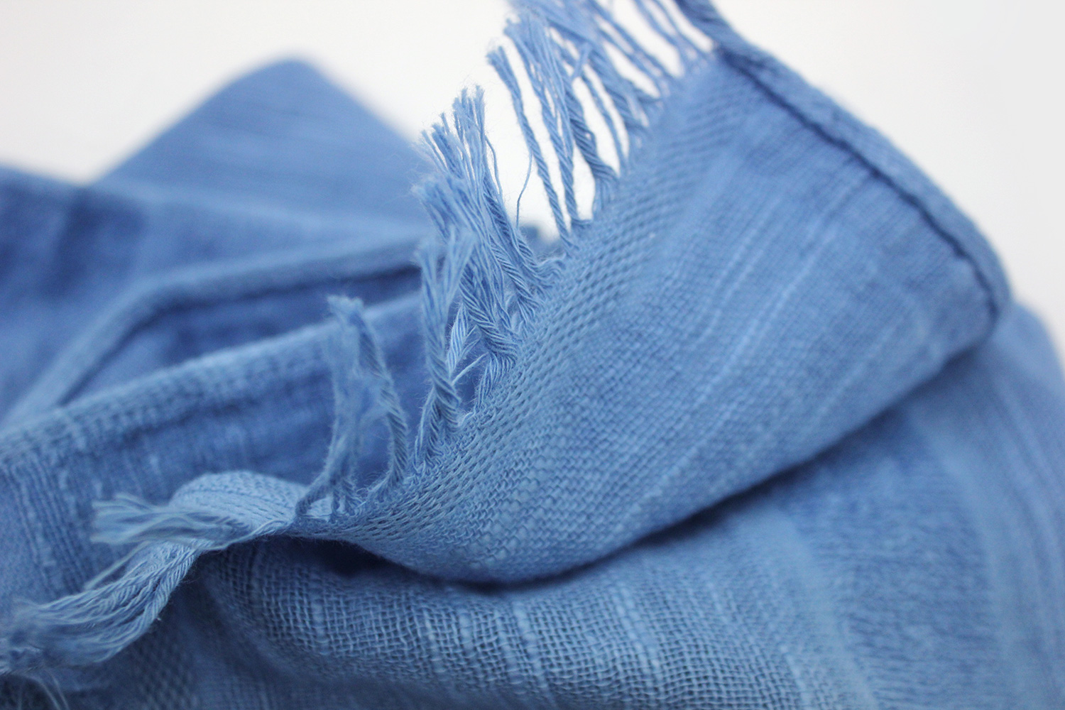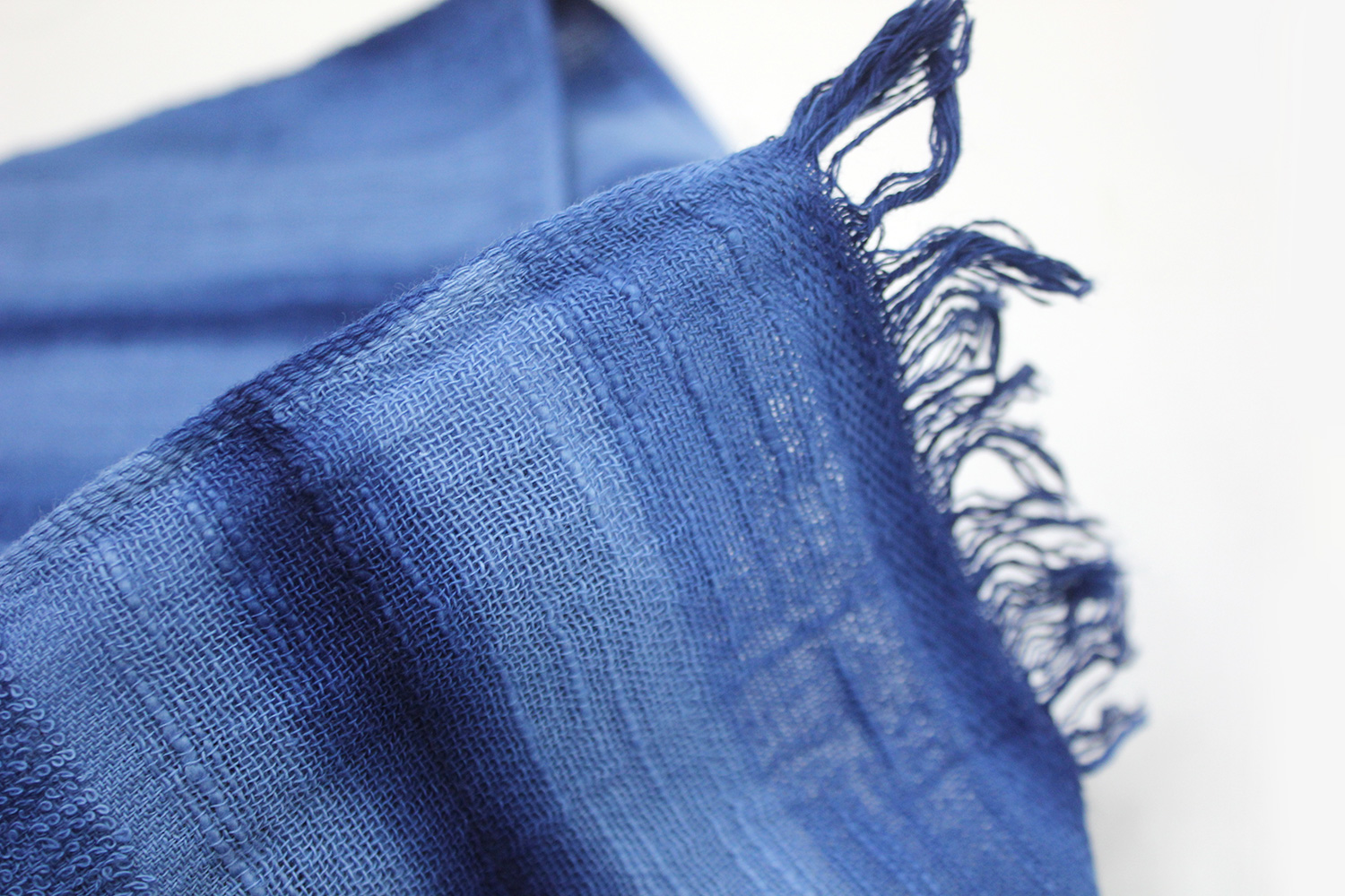 タオル地の変わり織生地を藍染したマフラーです。吸湿性が良く、夏場はタオルとして、冬はマフラーとしてオールシーズンお使いいただけるおしゃれなタオルマフラーです。